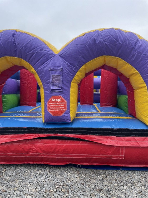 Bring high-energy fun to your event with this 45-foot inflatable obstacle course that converts easily for wet or dry use. Designed for kids and teens, the course features a series of tunnels, pop-up obstacles, climbs, and slides that keep participants moving and challenged from start to finish. When set up as wet, an integrated inflated pool and splash-ready slide turn the course into a refreshing fun time. Let us bring the fun to you! Great for Church Events, School events and much more!