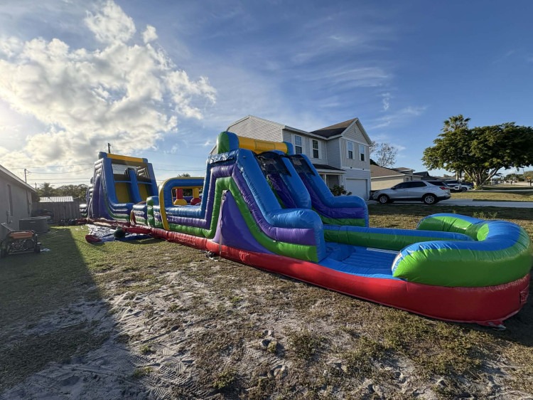 Take your event to the next level with our 80 Ft Inflatable Obstacle Course featuring a 19 Ft Extreme Rock Wall, built for high-energy fun and serious competition. This massive inflatable is perfect for school events, church functions, corporate events, field days, and large backyard parties. Let us bring the fun to you!